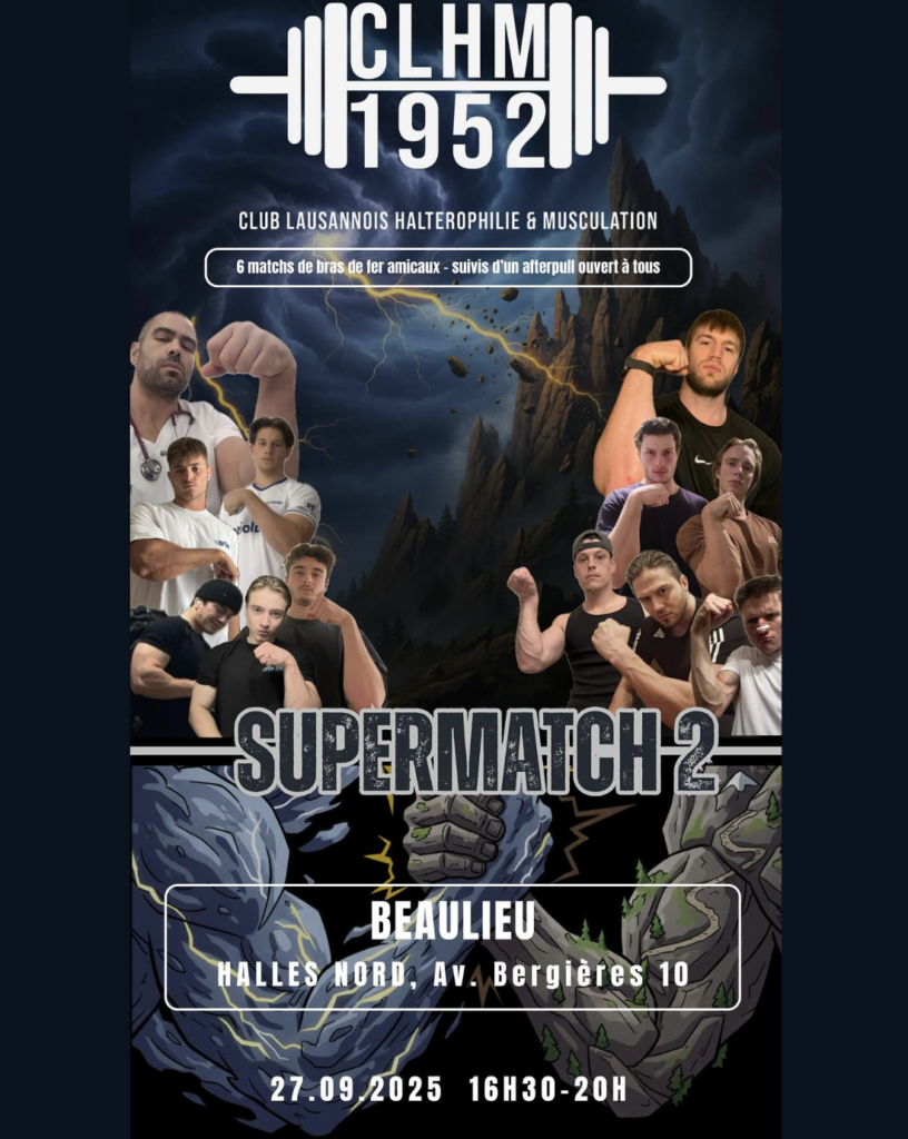 Save the date ! 📌 Samedi 27 septembre, les athlètes du CLHM vous donnent rendez-vous pour assister à une compétition amicale de bras de fer 🦾 6 matchs de 5 rounds intenses, opposants plusieurs athlètes prêts à tout donner. Retrouvez-les dès 16:30 dans les halles sportives de Beaulieu, dans les locaux de @grimper.ch_lausanne pour leur …